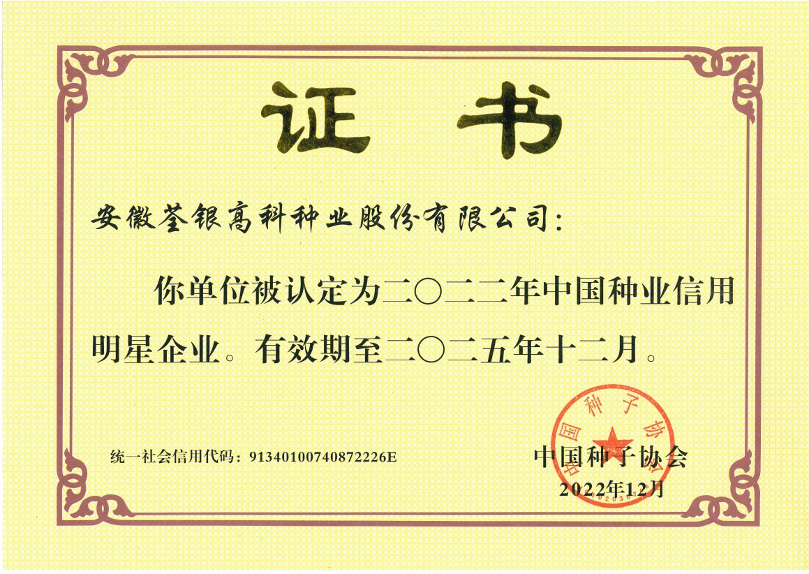 安徽荃銀高科種業股份有限公司是一家“以種業為核心、農業服務為延伸、探索和創(chuàng)新農業多元化發(fā)展”的現代高科技種業上市公司,證券代碼:300087。公司注冊資金9.47億元,系“中國種業領軍企業、農業產業化國家重點龍頭企業、國家高新技術企業、農業部首批農作物種子育繁推一體化企業、中國種業信用明星企業"。在國內控股子公司20多家,在國外設立分支機構4家,良種銷售至全國20多個省(市、區),出口覆蓋20多個國家與地區,種業綜合實力、雜交水稻研發(fā)、推廣及海外業務規(guī)模均居全國種子企業前2位。